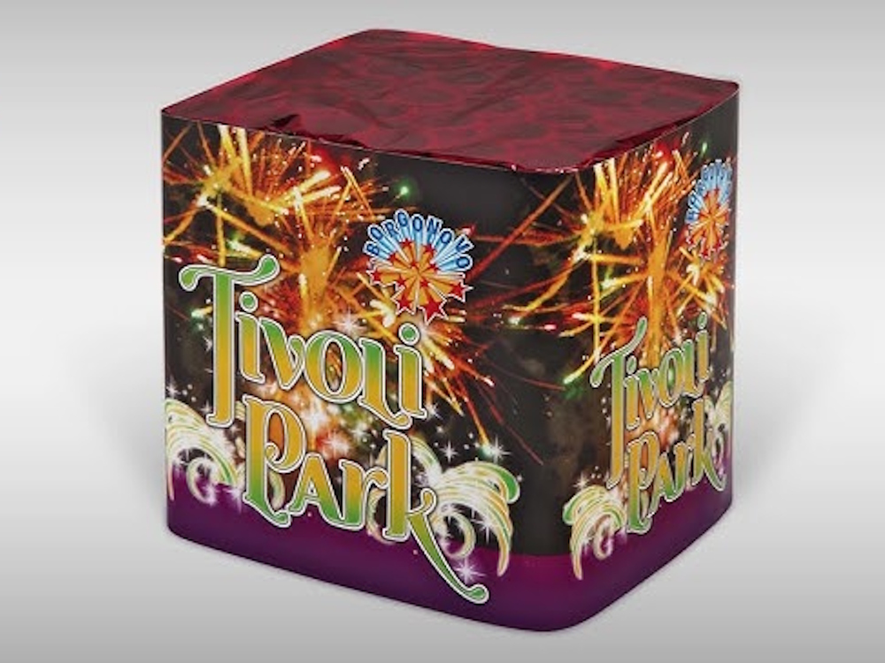 Effetto: Aperture di stelle lampeggianti verdi con centro dalia rossa, aperture di stelle lampeggianti oro con centro dalia viola e scia.
